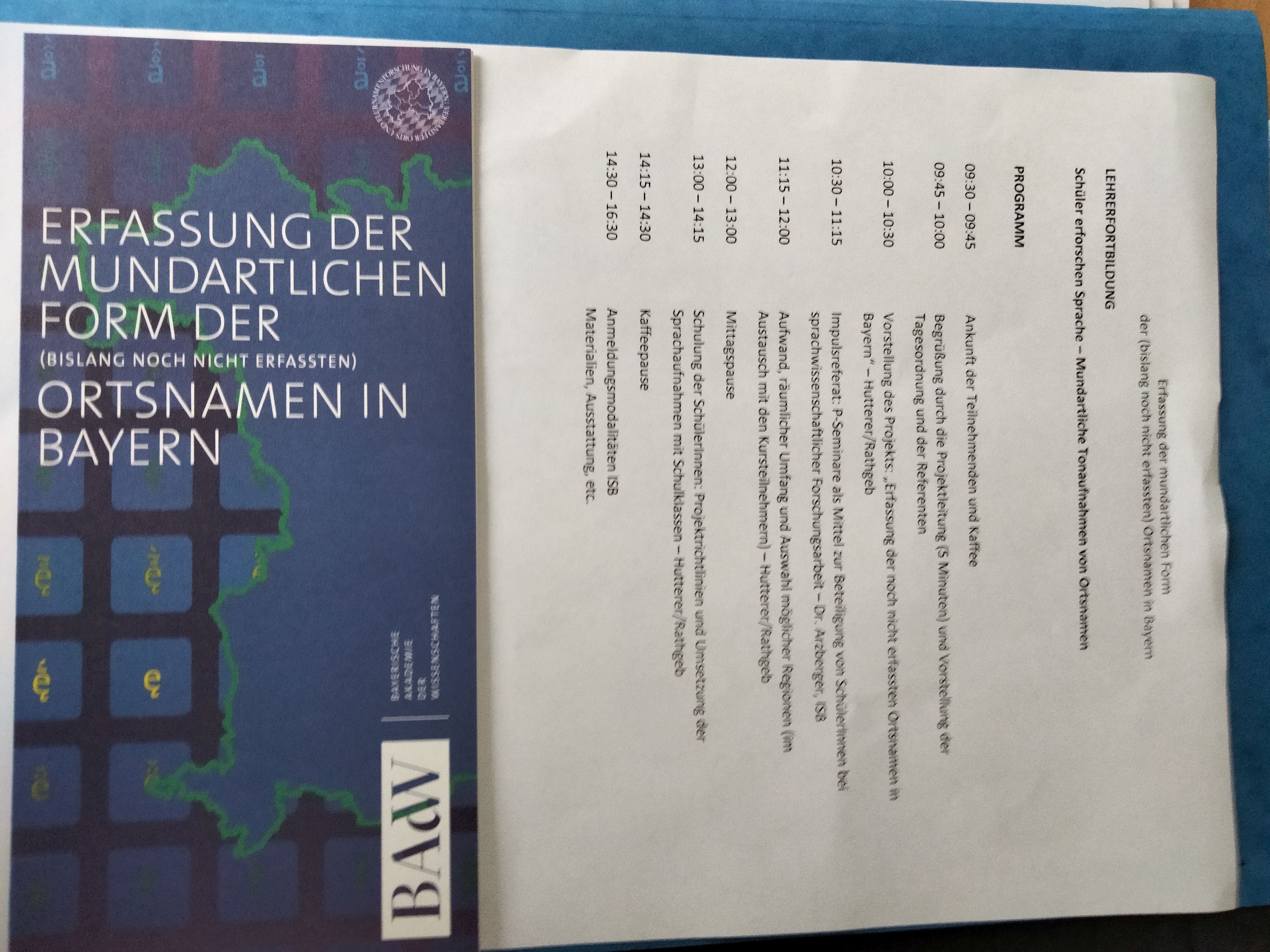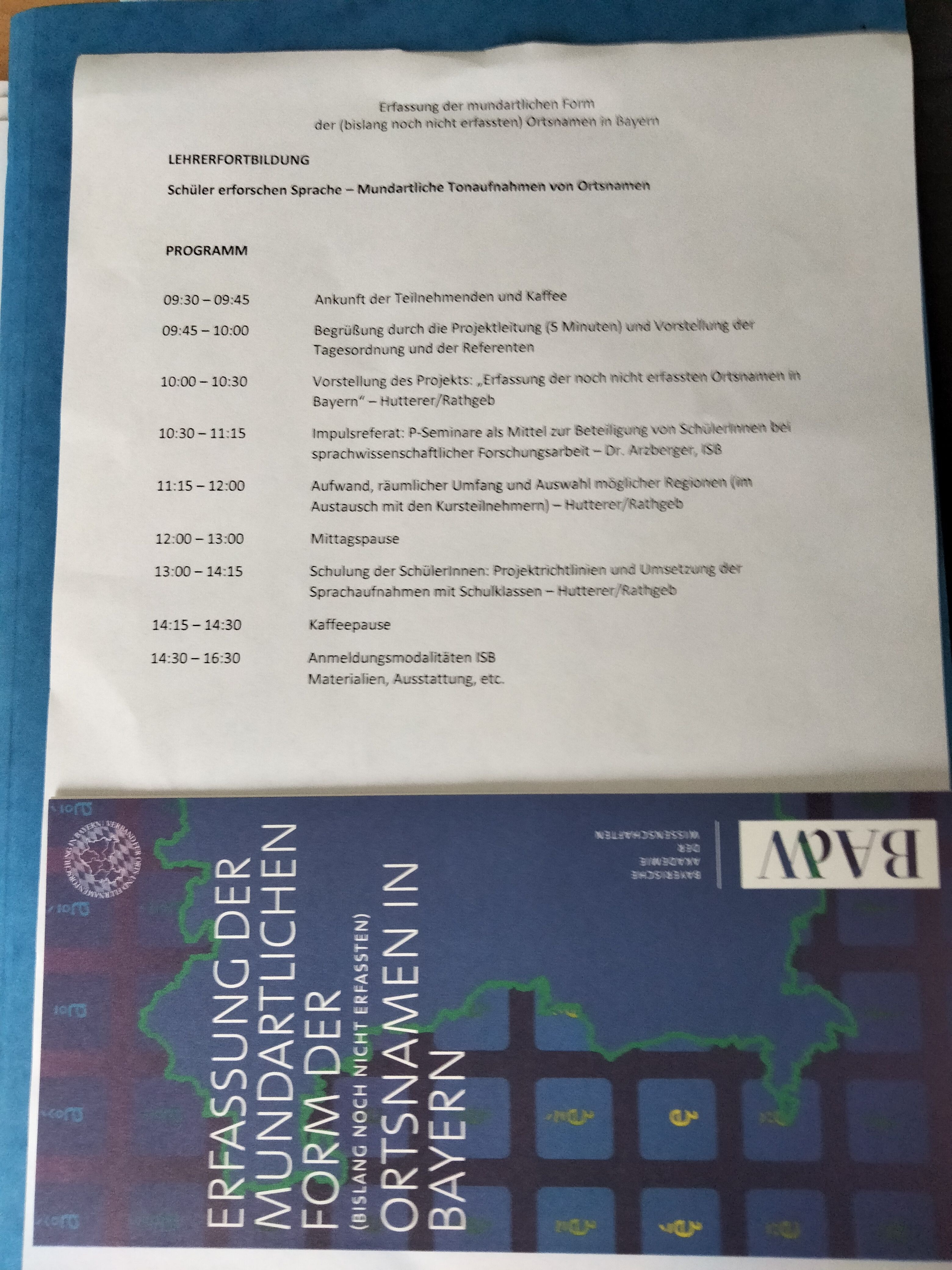 Programm Lehrerfortbildung im Rahmen des Projekts "Erfassung der mundartlichen Form der (bislang noch nicht erfassten) Ortsnamen in Bayern